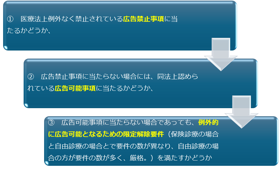 従前から、医療広告規制については、次の枠組によって広告の可否が判断されてきました。